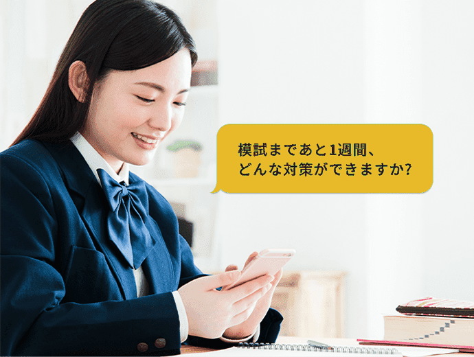 どんな些細なことでも質問可能なので、孤独に勉強していく不安はもうありません。自主学習の質を上げ、成績アップに繋げ、志望校合格を一緒に目指しましょう!安心・便利な受講スタイル